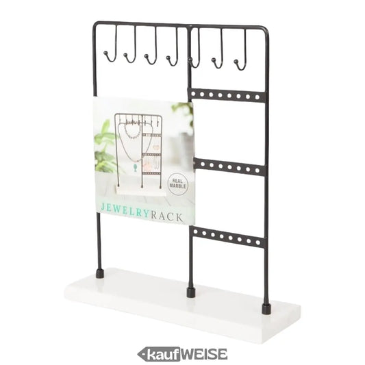 Seasamh seodra (20cm) le bonn marmair fíor | Sealbhóir seodra dubh T-chruthach | Dubh nó bán