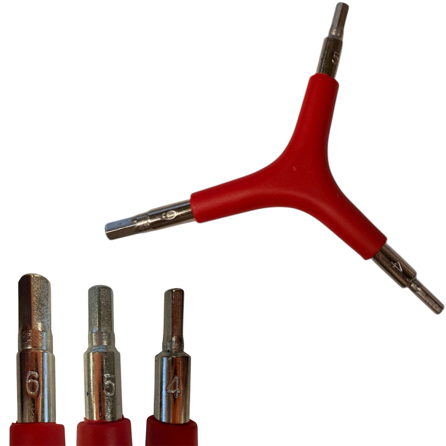 Comhcheanglaíonn an Y-Uirlis na trí mhéid soicéad heicseagán méadrach is coitianta: 4 mm, 5 mm agus 6 mm. Tá siad seo marcáilte go soiléir ag foircinn faoi seach na huirlise.